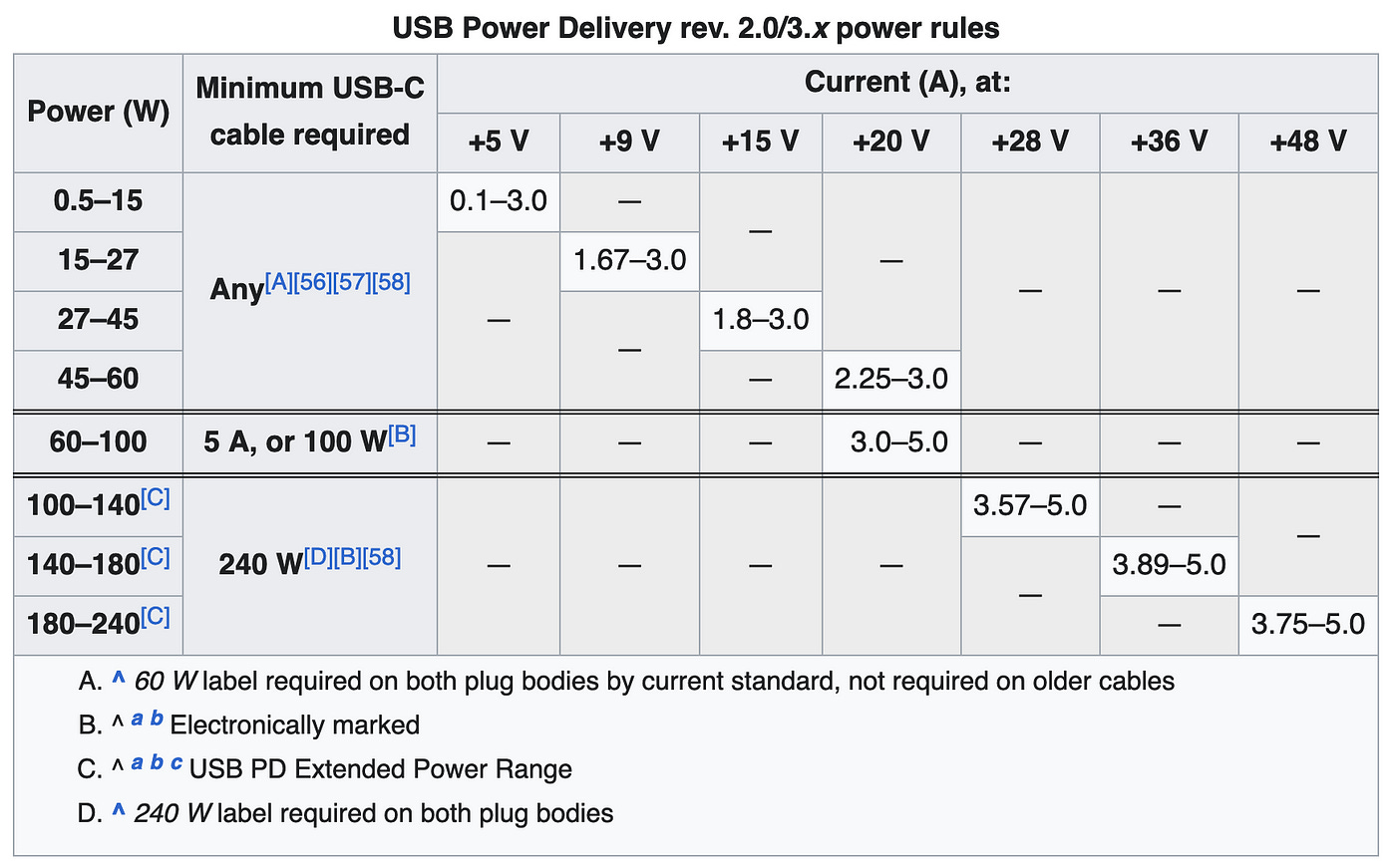Hackaday is a good source if you want to read more background about USB-C: Power Delivery, and Arya’s point is that USB-PD generally is good for the planet, because 1) it eliminates proprietary barrel plug chargers that we’ve been using for laptops and myriads of other devices, and 2) 20 V-capable chargers also have to support 5 V, 9 V, and 15 V as well in practice. This all converges to less electronic waste, and results in reusable technology. (source)